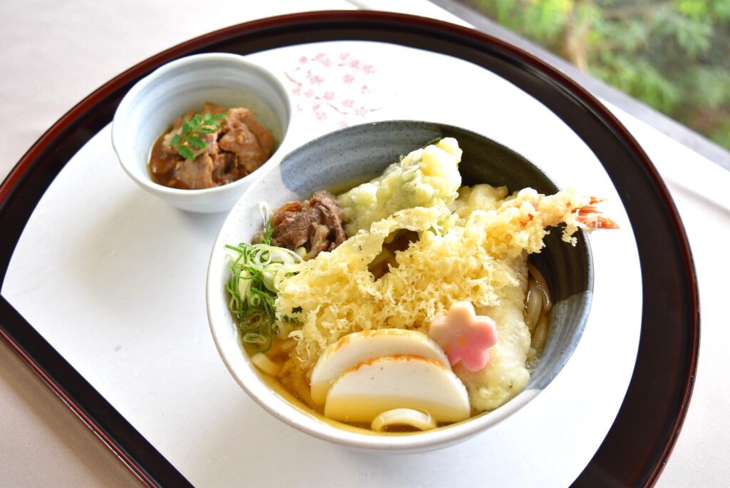 冬のあったかメニュー 大海老天と牛肉の甘辛煮の 2種類の味をお楽しみください。