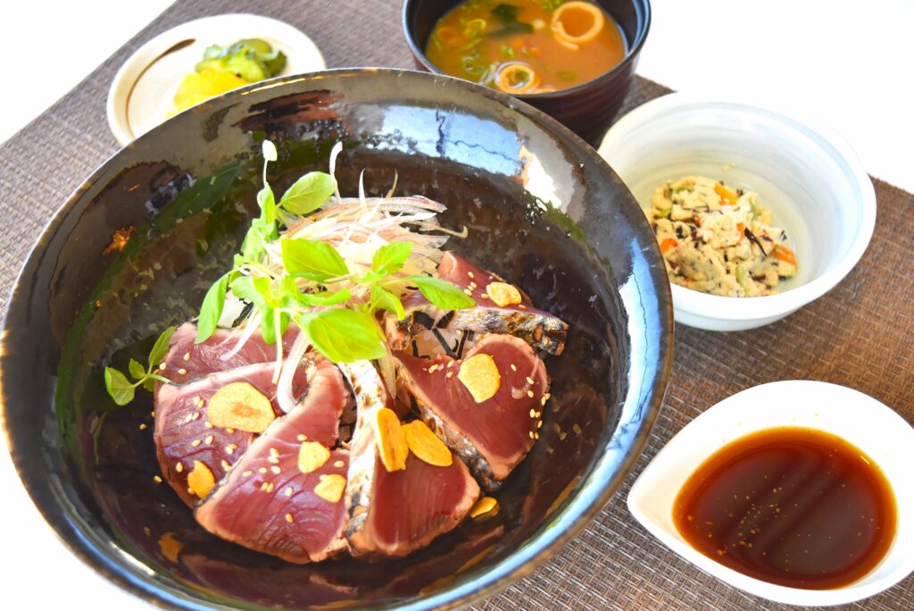 戻り鰹は、たっぷりと脂を蓄えた濃厚な旨味が魅力的で 『トロ鰹』とも呼ばれるほどの逸品です。 新鮮な鰹のたたき丼をお召し上がりください。