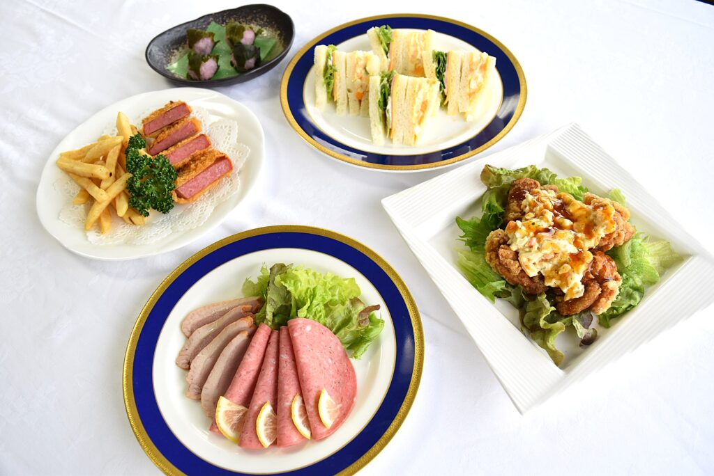 ●コールミート盛り合わせ ●ミックスサンドとフライドポテト ●豚もつ味噌煮込み ●よりどり点心 ●揖保乃糸のにゅう麺