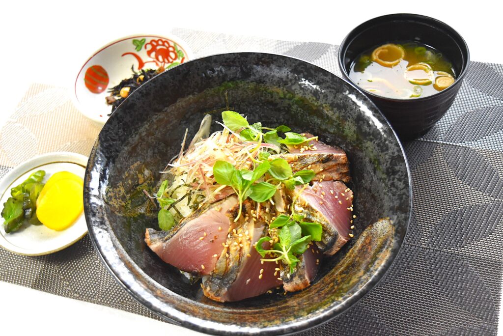脂が控えめで、身が引き締まっているのが 特徴の新鮮な春鰹を使用しています。 旬の味をお楽しみください。