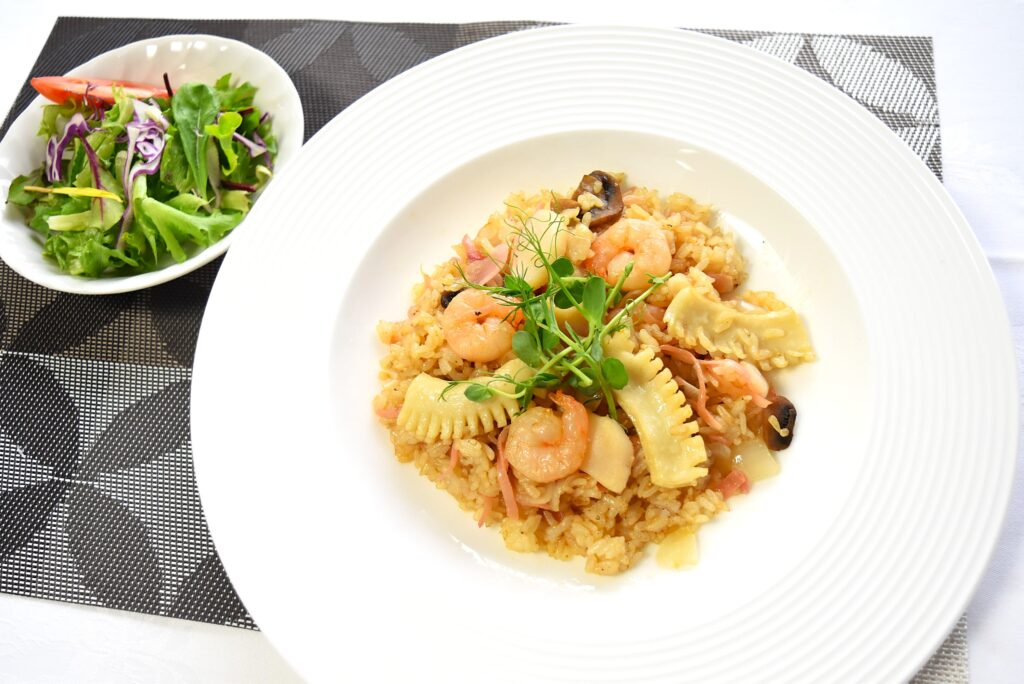 国産牛を使用したハンバーグとプリップリの大海老フライのボリュームのあるランチです。