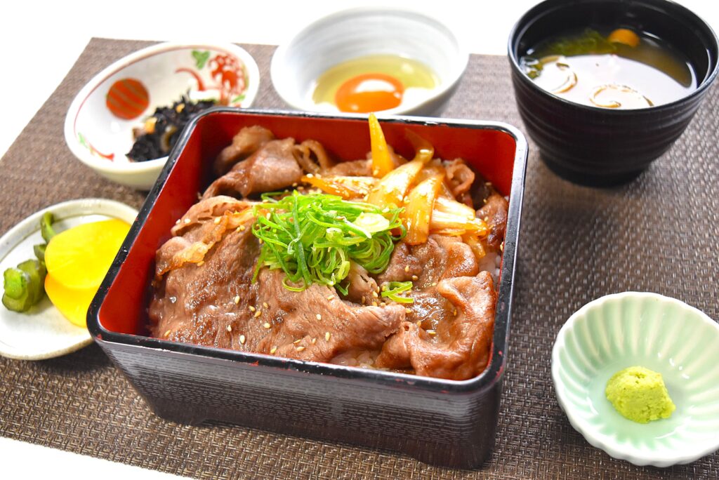 厳選した肉を強火でサッと炙り甘辛たれを絡めています。 生卵と一緒にすき焼き風でお召し上がりください。